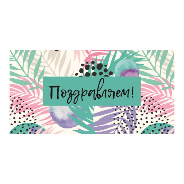 Открытка-конверт для денег "Поздравляем! Тропические листья" 8,5*16,5см 1-04-0401 Optima