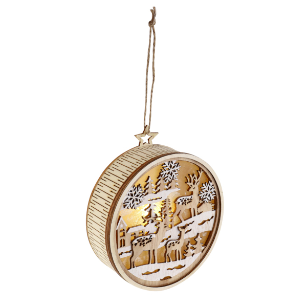 Подвесное украшение из дерева "Рождественские оленята" led-подсветкой 12см, на батарейках НУ-3894