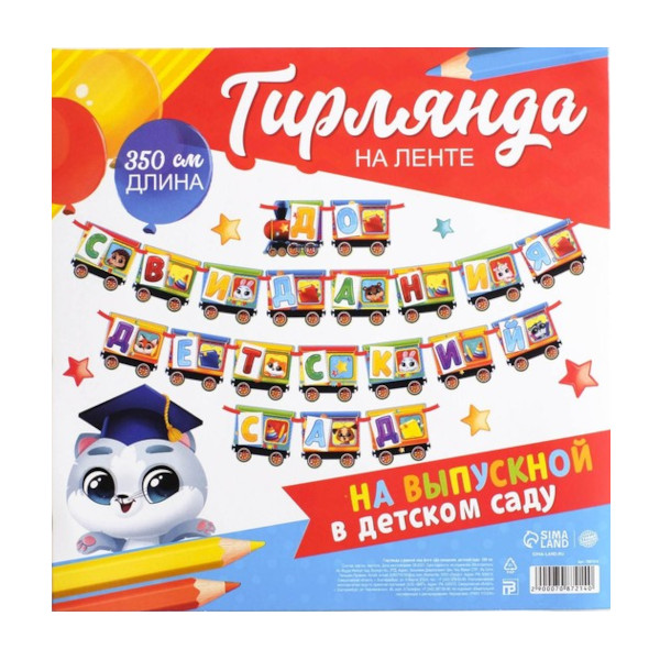 Гирлянда на ленте "До свидания детский сад" дл. 350 см, рамка для фото 7087214 Страна Карнавалия