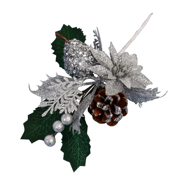Декор "Зимние грезы" серебряный цветок, листья, 16см 9698917 Зимнее волшебство