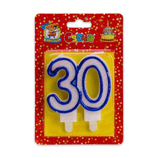 Свеча для торта "Цифра 30. Значимые даты" синяя, С-2485 Миленд