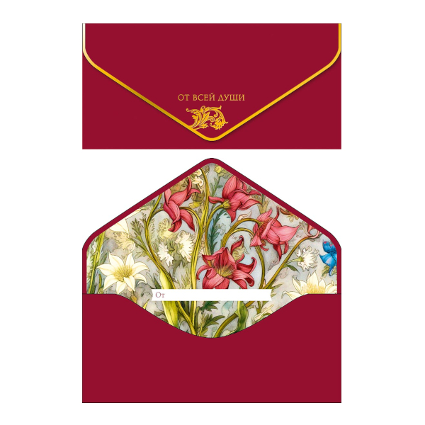 Открытка-конверт для денег "От всей души. Бордовый" 9,3*19см 1216.553 Арт Дизайн