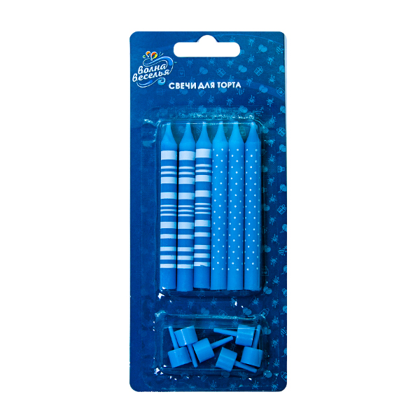 Свечи для торта "Точки и полосы" 8см, голубые (1уп*6шт) 132439 Волна веселья
