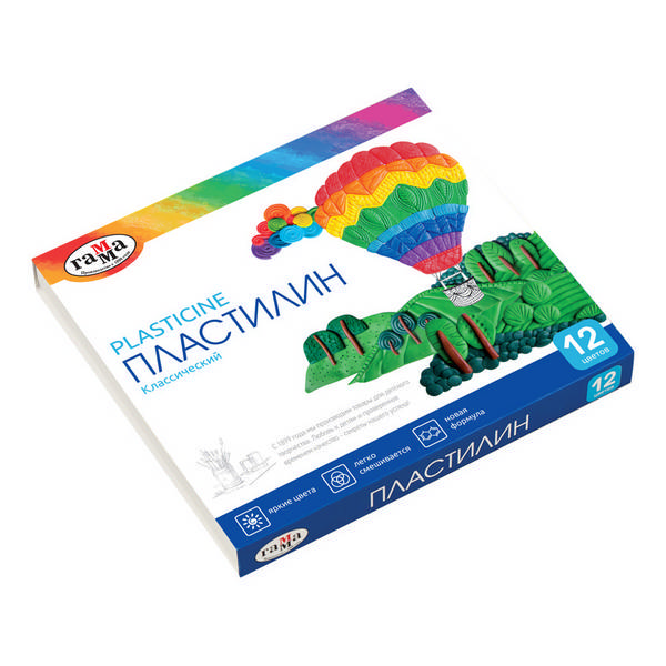 Пластилин Гамма "Классический" 12цв, 240г, классич., со стеком, карт.уп. 281033