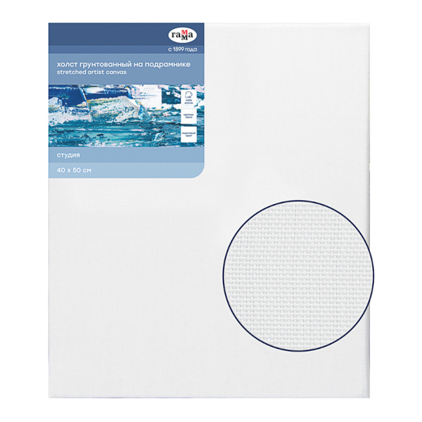 Холст грунтованный на подрамнике 40*50см, 400г/м2, крупное зерно, хлопок "Студия" 280818_26 Гамма
