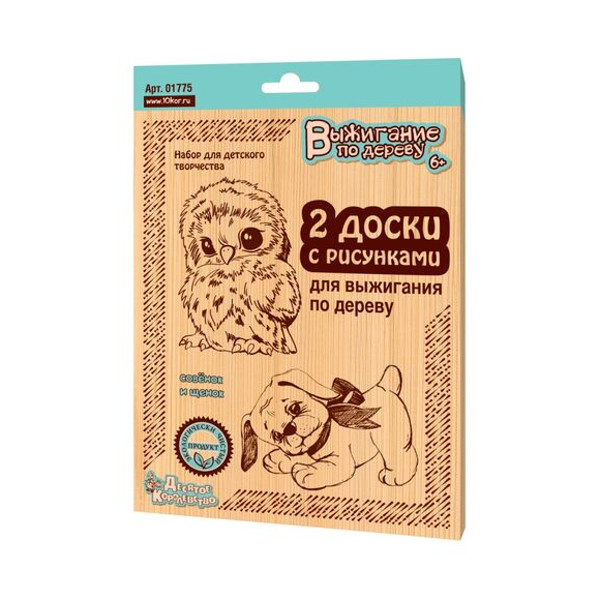 Досточка для выжигания набор "Совенок и щенок" 2шт, блистер 01775 Десятое королевство