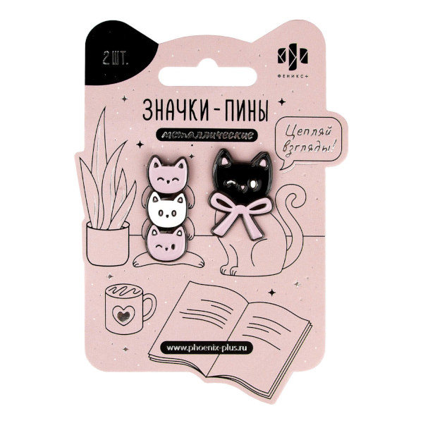 Значки-пины "Розовые коты" 14*35/21*30мм, металл, 2шт 71124 Феникс+
