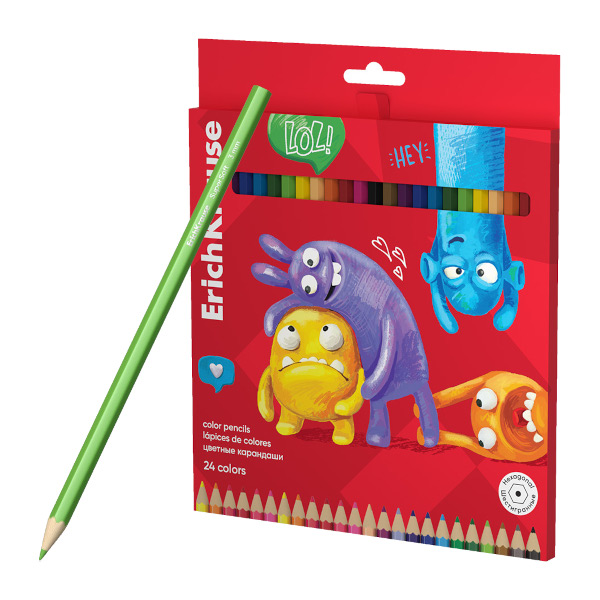Карандаши 24цв, дерево, 6-гран. "Jolly Friends" карт.уп. 61794 Erich Krause