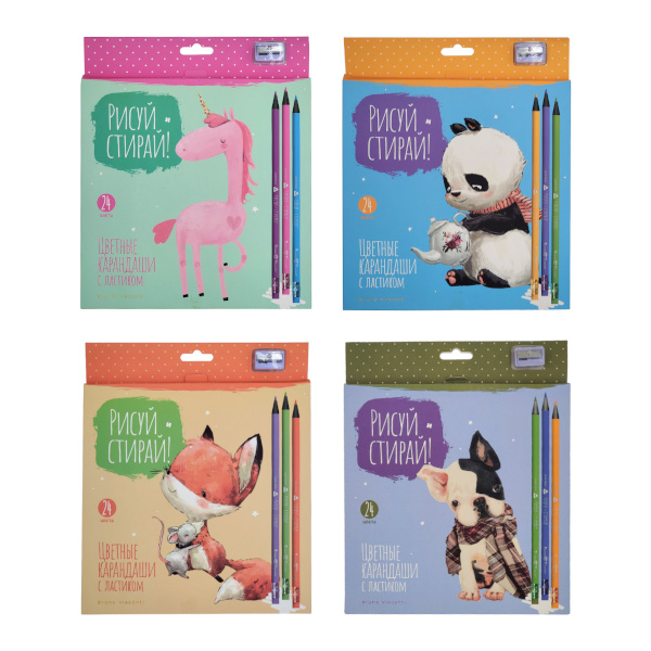 Карандаши 24цв, пластик, 3-гран. "Рисуй и стирай" ластик, точилка, ассорти 30-0122 Bruno Visconti