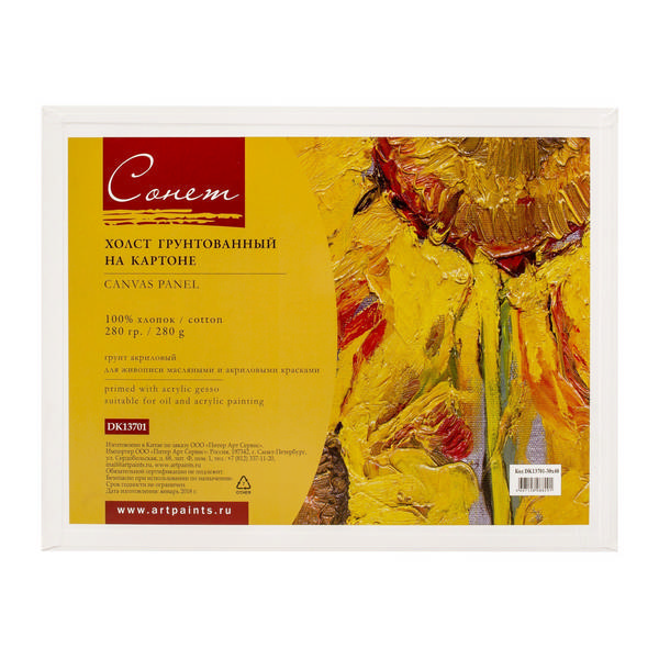 Холст грунтованный на картоне 25*35см, 280г/м2, мелкое зерно, хлопок "Сонет" DK13701-25х35