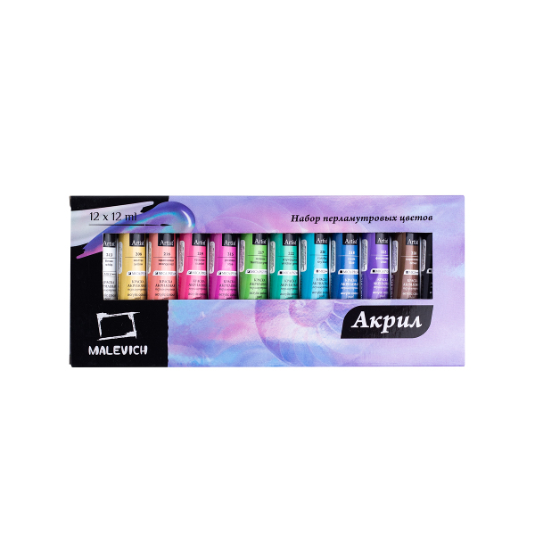 Краски акриловые Малевичъ 12цв, 12мл в тубе, перламутровые 612003