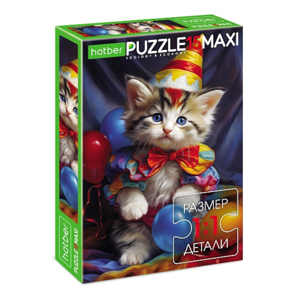 Пазлы 15 элем. дет. MAXI "ECO. Котик-клоун" А4 220*330мм 15ПЗ4_31203 Hatber