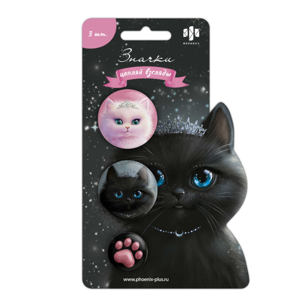 Набор значков закатных "Кошечки-принцессы" d=37/25мм, металл, 3шт 71104 Феникс+