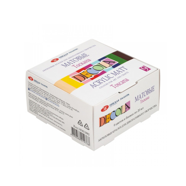 Краски акриловые "Тоскана" Decola, матовый, 9цв, 20мл в банке, карт.уп., Невская палитра, 143411882