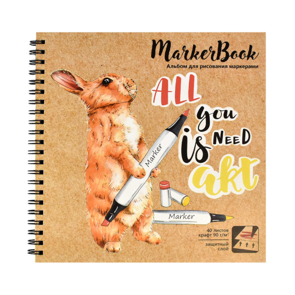 Альбом для рис. маркерами 40л 195*195мм "Кролик" гребень, 90г/м2, маркер. крафт-бум 61238 Феникс+