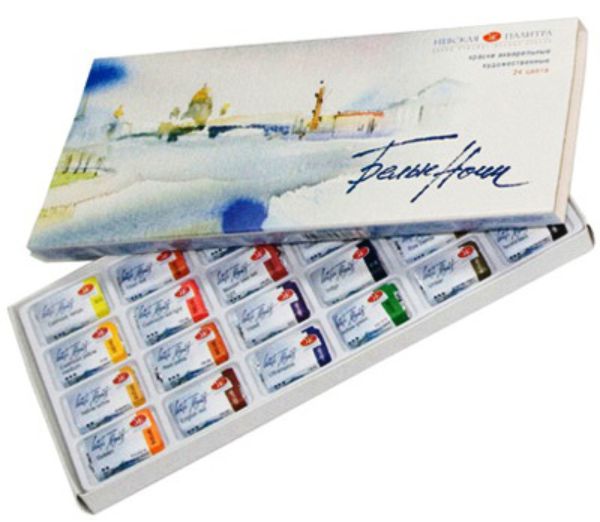 Акварель худож. Невская Палитра "Белые ночи" 24цв без кист., кюветы 2,5мл в карт.уп. 1941061