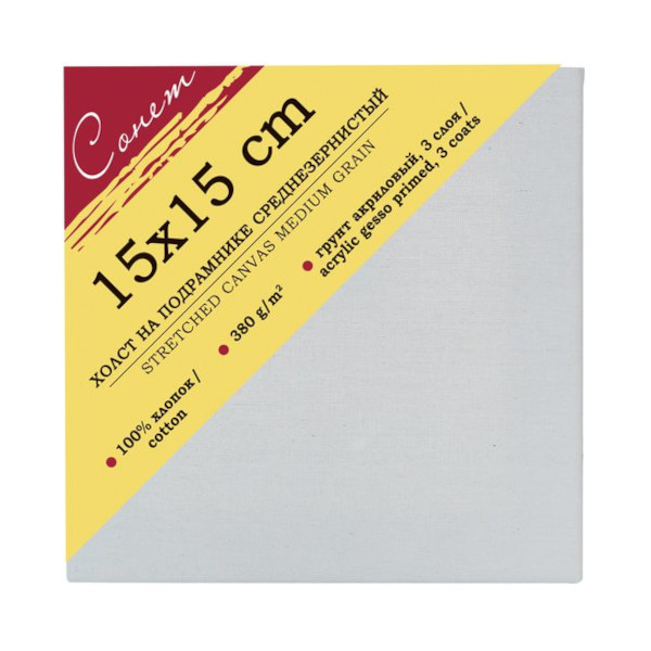 Холст грунтованный на подрамнике 15*15см, 380г/м2, среднее зерно, хлопок "Сонет" E5305-B-15x15