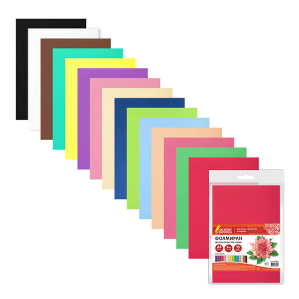 Пористая резина (фоамиран) А4 15л/15цв, 1мм 665097 Остров сокровищ