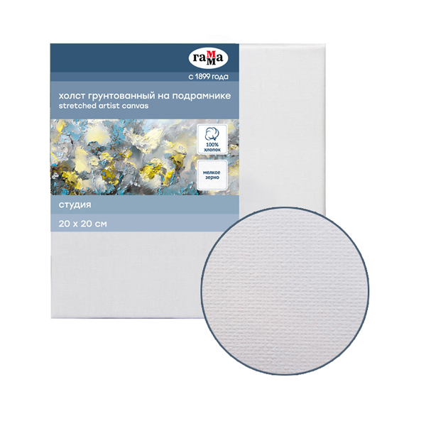 Холст грунтованный на подрамнике 20*20см, 280г/м2 мелкое зерно, хлопок "Студия" 060220202 Гамма