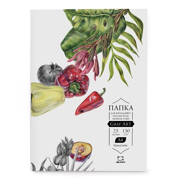 Папка для сухих техник: пастель, карандаши, уголь, соус "GrafArt" А4 25л 150г/м2 402302 Малевичъ