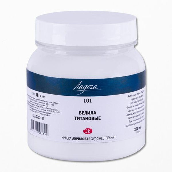 Краски акриловые ЗХК "Ладога" белила титановые, 220мл 2223101