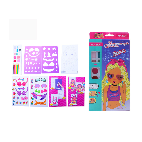 Альбом для творчества "Вика" А4 24стр., наклейки, трафареты, косметика, цв.каранд. M-6569 MAZARI ТМ