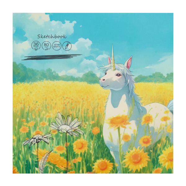 Скетчбук для маркеров 215*215мм 36л, 80г/м2, склейка "Единорог в поле" 36-0105 Проф Пресс
