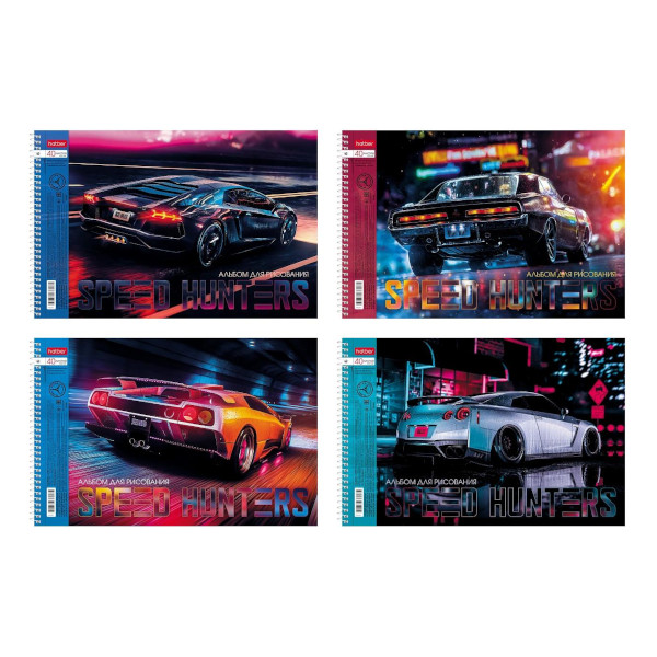 Альбом для рис 40л А4 "Охотники за скоростью" 100г/м2, спираль, обл.мел.картон, ассорти 40А4Всп Hatber