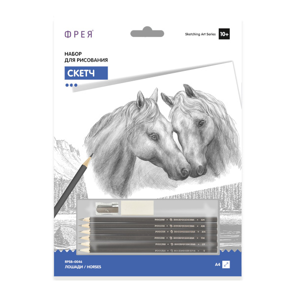 Картина по номерам ч/гр карандашами ФРЕЯ 20,5*29,5см "Лошади" RPSB-0046