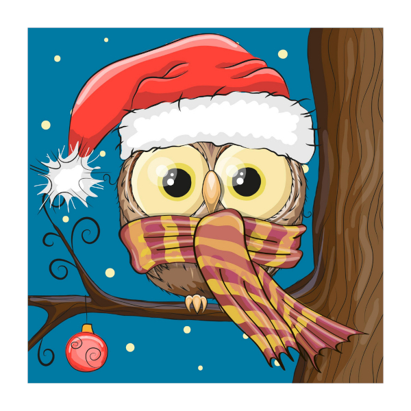 Алмазная мозаика Рыжий кот 20*20см "Новогодняя сова" НД-5848