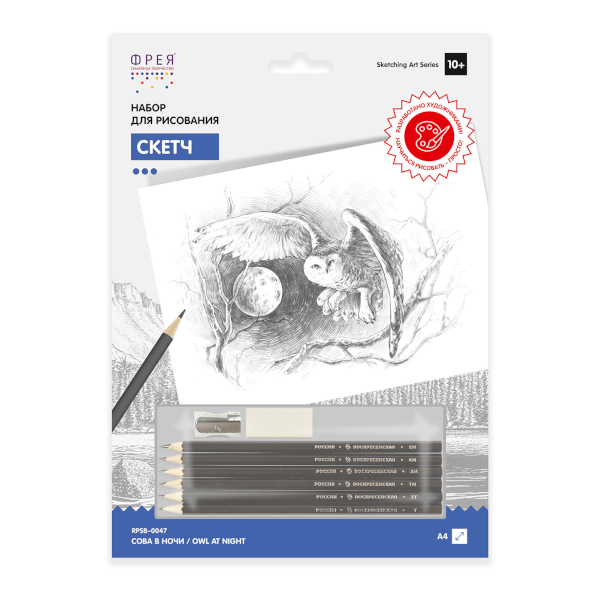 Картина по номерам ч/гр карандашами ФРЕЯ 20,5*29,5см "Сова в ночи" RPSB-0047