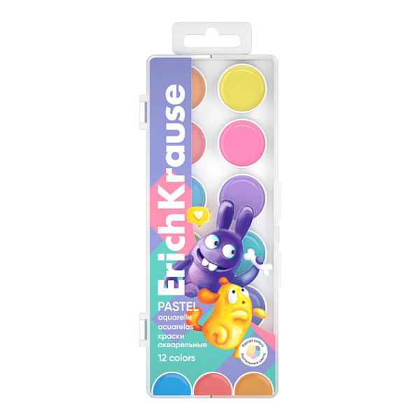 Акварель Erich Krause "Jolly Friends Pastel" 12цв без кист., в пласт.уп. 61370