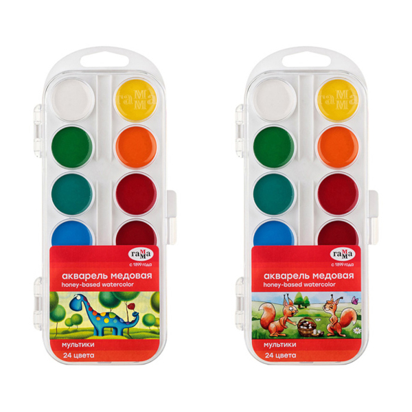 Акварель мед. Гамма "Мультики" NEW 24цв без кист. пластик. упак., европодвес 211046_24
