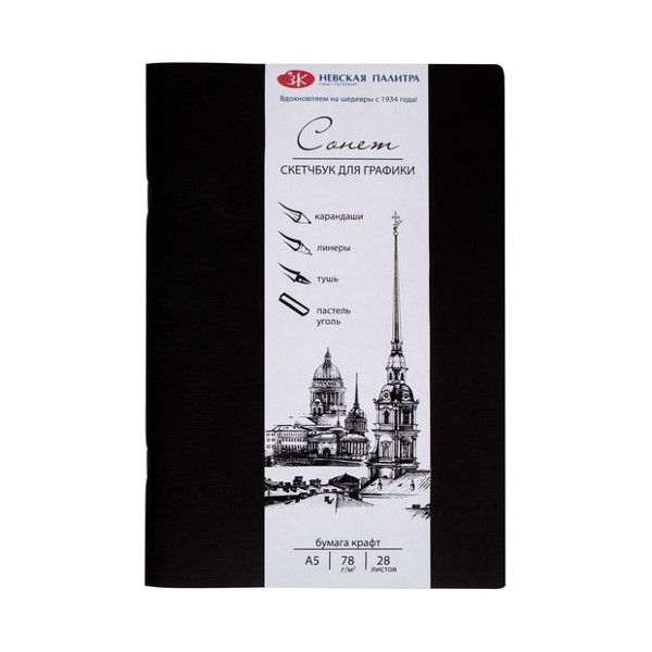 Скетчбук крафт листы А5 32л, 78г/м2, скоба "Сонет" черный 50451721 Невская палитра