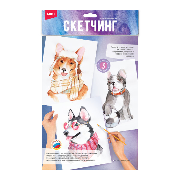 Набор для скетчинга акварелью "Собаки на прогулке" 3 основы Рн-041 Lori