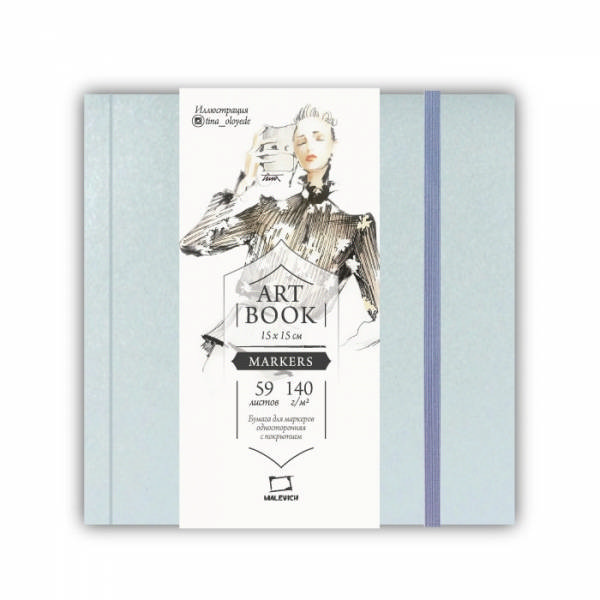 Скетчбук для маркеров 150*150мм 80л, 75г/м2, склейка "Fashion" лазурный, резинка 401122 Малевичъ