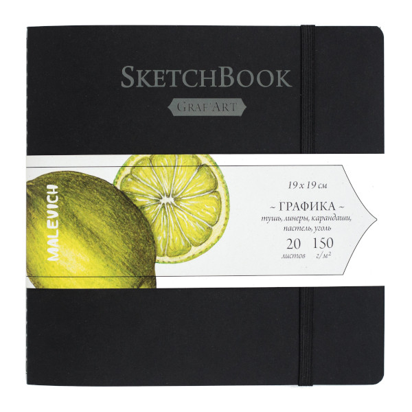Скетчбук для графики и письма 190*190мм 20л, 150г/м2, сшивка "Flora" черный, рез 401212 Малевичъ