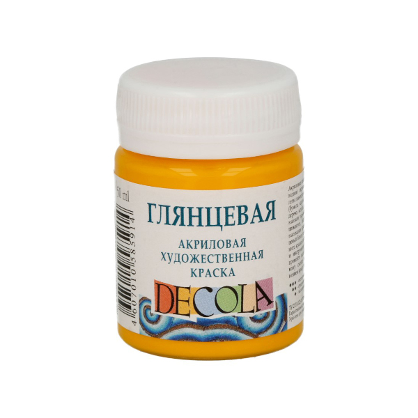 Краски акриловые Невская Палитра "Decola" глянцевая, желтый средний, 50мл в банке, 2928220
