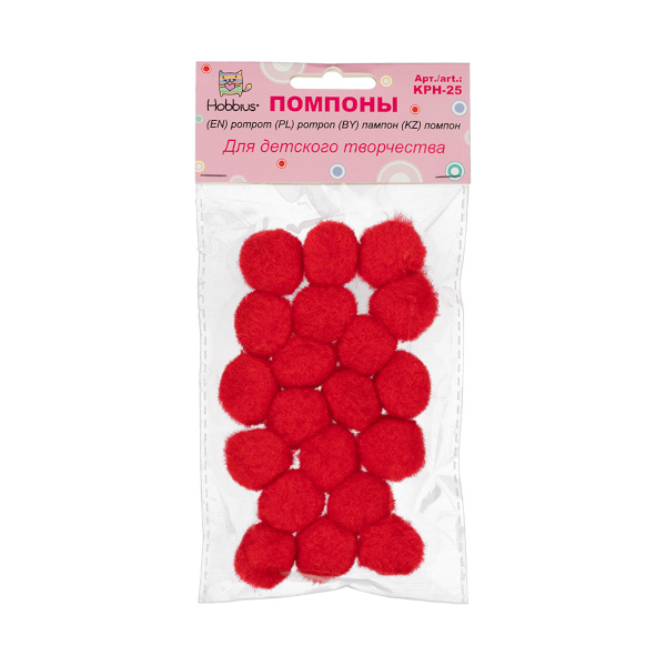 Помпоны 25мм, 20шт, 02 красный KPH-25 Hobbius