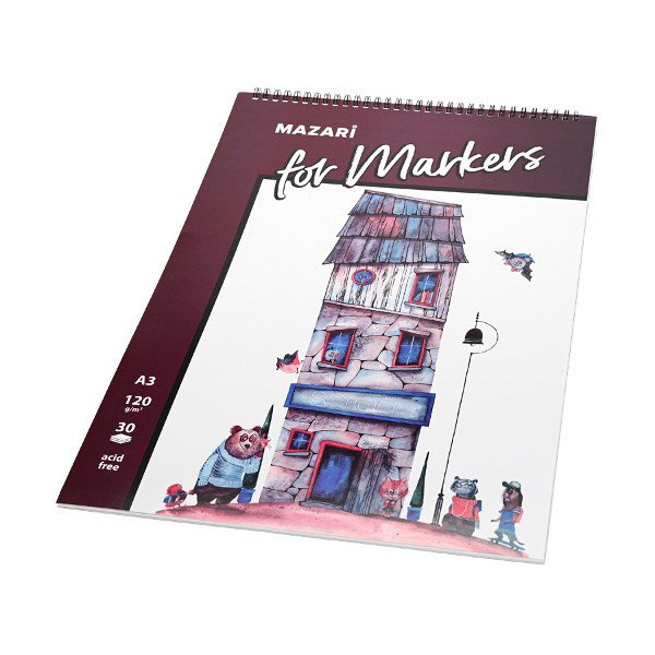 Скетчбук для маркеров А3 30л, 120г/м2, гребень "School" M-8380 MAZARI ТМ
