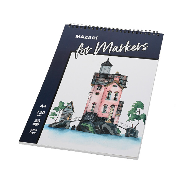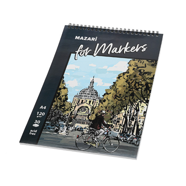 Скетчбук для маркеров А4 30л, 120г/м2, гребень "Город" M-8378 MAZARI ТМ