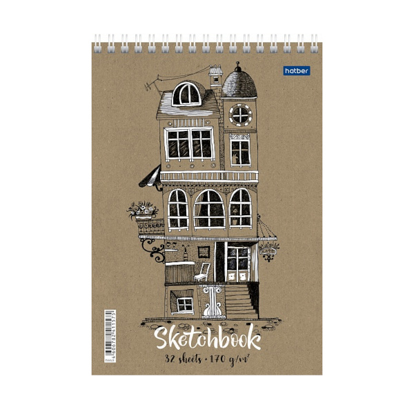 Скетчбук крафт листы А5 32л, 170г/м2, гребень "Сказочный домик" 32Б5Aгр_24193 Hatber
