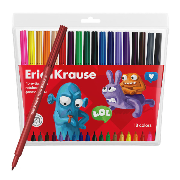 Фломастеры Erich Krause "Jolly Friends" 18цв., смываемые, ПВХ-чехол 61832