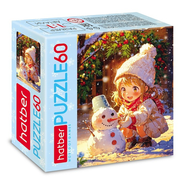 Пазлы 60 элем. "Девочка и снеговичок" А5 165*230мм 60ПЗ5_32856 Hatber