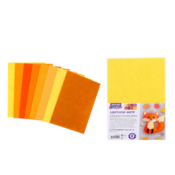 Набор фетра декоративного "Желтый/оранжеый" А4, 8л, 8цв, 1мм M-20236 MAZARI ТМ