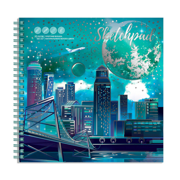 Скетчпад для графики и письма 195*195мм 40л, 100г/м2, гребень "Ночной город" 62460 Феникс+