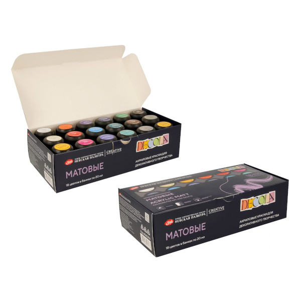 Краски акриловые Невская Палитра "Decola" 18цв, матовый, 20мл в банке, карт.уп. 143412150