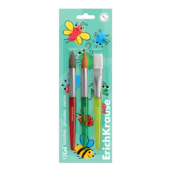 Набор кистей 3шт "Baby" синтетика (круглая, плоская) пони (круглая) 62036 Erich Krause