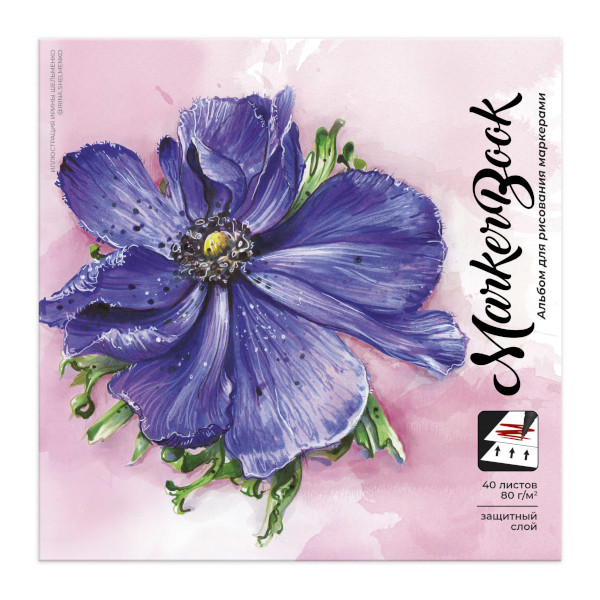 Альбом для рис. маркерами 40л 195*195мм "Анемон" склейка, 80г/м2 белая маркерная 64290 Феникс+