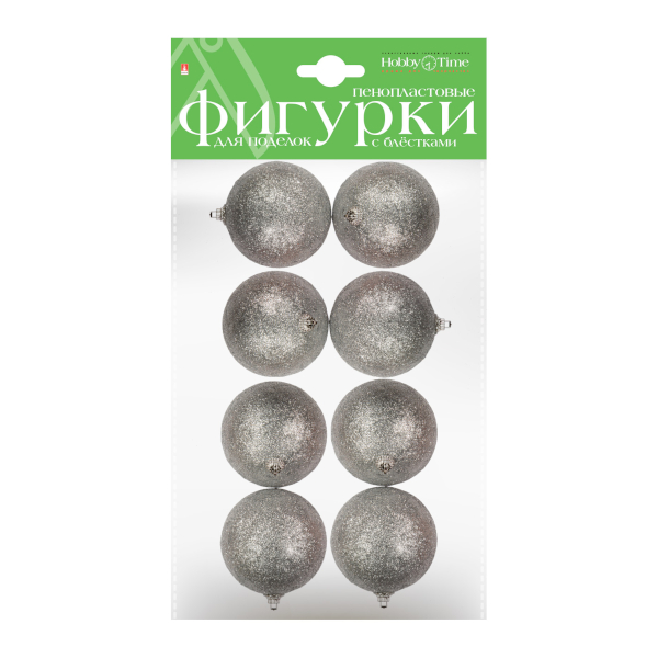 Заготовка для декора пенопласт "Шары. Глиттер. Серебро" 4см (8шт) 2-806/02 HOBBY TIME
